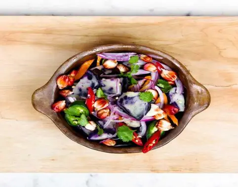 - 모든 채소는 잘 씻은 후, 먹기 좋은 크기로 다져줍니다. 특히, 가지는 미리 나누어 자르는 것이 요리할 때 편리합니다.